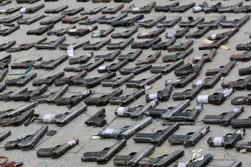 據介紹,從2011年至今,全州公安機關共收繳各類槍支3410支,(其中:2011年147支,2012年835支,2013年453支,2014年628支,2015年1至7月1347支);收繳各類子彈133207發(fā),(其中:2011年52894發(fā),2012年1332發(fā),2013年7099發(fā),2014年10586發(fā),2015年61296);收繳炸藥18002公斤,雷管182566枚,導火線29911米,收繳各類管制刀具2521把,破獲涉槍涉爆案件998起,抓獲犯罪嫌疑人1001人。