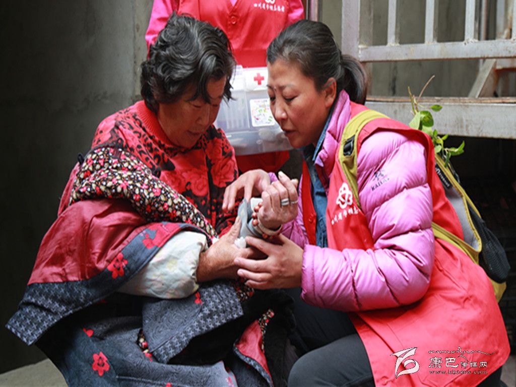 10月11日,由州婦聯(lián)牽頭,康定精英教育、岡拉梅朵藏區(qū)公益事業(yè)發(fā)展中心的志愿者在公主橋社區(qū),為10名高齡困難母親免費發(fā)放了價值三千余元的“健康包”(便攜式血壓儀、溫度計、碘伏、創(chuàng)可貼、棉簽等物品。)為老人們詳細講解“健康包”的使用方法。圖為志愿者為困難母親測血壓。(王曉燕 攝影報道)