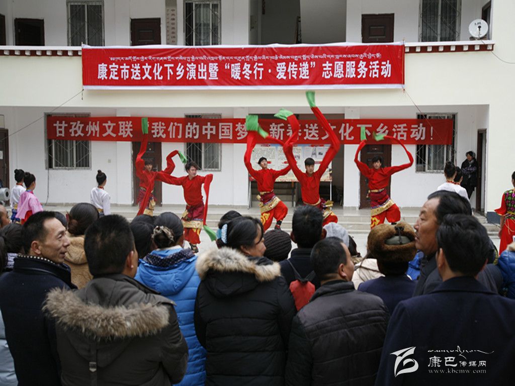 本網(wǎng)訊(本網(wǎng)記者 張兵)1月8日,由州文聯(lián)與康定市聯(lián)合主辦的以“我的中國夢”為主題的2016送文化下鄉(xiāng)文藝演出隊(duì)迎著冬陽伴著寒風(fēng)走進(jìn)大山深處的金湯鎮(zhèn)。整臺演出節(jié)目新穎、形式多樣,獨(dú)唱、歌舞、川劇、政策宣講等節(jié)目精彩紛呈,不時博得觀眾們的熱烈掌聲,鎮(zhèn)政府成了歡樂的海洋。同時,州攝影家協(xié)會、州書法家協(xié)會的專家還現(xiàn)場免費(fèi)拍攝全家福照片、免費(fèi)書寫春聯(lián)。“送文化下鄉(xiāng)”演出隊(duì)帶去了黨和政府對人民群眾的關(guān)懷,同時也營造了文明、健康、歡樂、祥和的節(jié)日氣氛。當(dāng)天,“送文化下鄉(xiāng)”演出隊(duì)不辭辛苦,還在姑咱鎮(zhèn)進(jìn)行了演出。