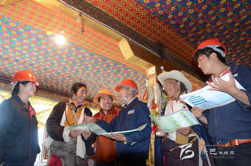 黨員服務(wù)隊走進藏族村民家里,介紹安全用電知識。