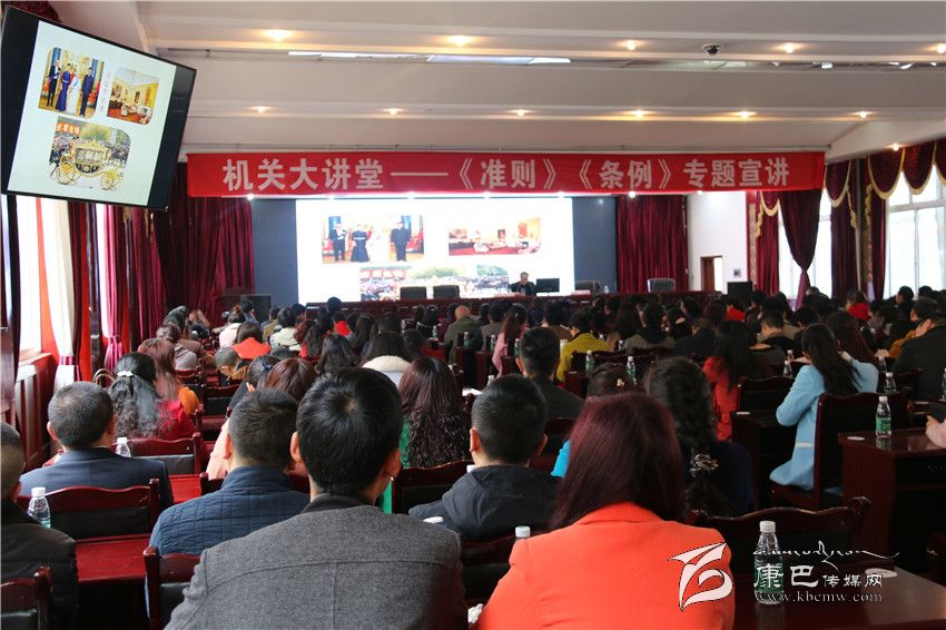 本網(wǎng)訊(記者 宋志勇 文/圖)為推動(dòng)州直機(jī)關(guān)各基層黨組織和廣大黨員干部深入學(xué)習(xí)、宣傳、貫徹兩項(xiàng)法規(guī),準(zhǔn)確把握“兩項(xiàng)法規(guī)”的內(nèi)涵和精神實(shí)質(zhì),真正把黨規(guī)黨紀(jì)的權(quán)威樹起來(lái)、立起來(lái)、執(zhí)行到位。4月6日上午,州直工委舉辦“機(jī)關(guān)大講堂”——貫徹學(xué)習(xí)《中國(guó)共產(chǎn)黨廉潔自律準(zhǔn)則》和《中國(guó)共產(chǎn)黨紀(jì)律處分條例》專題宣講會(huì),來(lái)自州級(jí)機(jī)關(guān)、省屬單位科級(jí)以下黨員干部共300多人聆聽了講座。