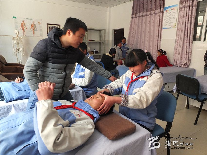 在一間實訓(xùn)室里,記者看到康定盲協(xié)協(xié)會主席,楊氏盲人按摩館的楊老師正在為孩子們演示按摩和足浴技能,孩子們學得很投入,老師演示完一個動作后,他們就迫不及待地組成小組相互演練起來。據(jù)老師介紹,這個班有6名學生技有所成,可以獨擋一面,他們將在學校實訓(xùn)基地開張時亮相,用雙手去實現(xiàn)他們的人生價值。