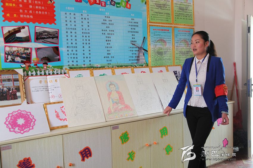 在少年宮作品陳列室,一幅幅精美的唐卡、剪紙、國(guó)畫、藏文書法作品和自制的手工藝品吸引了記者的目光。線條流暢的唐卡、生動(dòng)的剪紙、遒勁的書法,讓這個(gè)小小的陳列室充滿了濃濃的“文化味”。