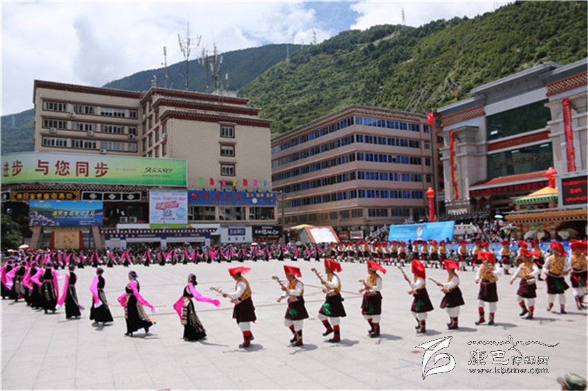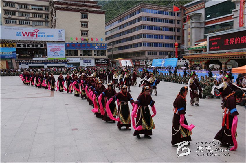 表演在巴塘縣舞之中拉開帷幕,上百名身著盛裝的男女演員用歡快的舞步、飄揚的云袖向康定市民和四方來客展現了“弦子之鄉(xiāng)”的淳樸熱情和如畫風光。演員們精彩、投入的表演贏得了現場觀眾的陣陣好評。分別表演完各自的縣舞之后,三縣人馬一同跳起了甘孜州州舞,在熟悉的《康定情歌》旋律之中,男男女女、老老少少300余人盡情舞蹈,時而大步流星、時而小心翼翼、時而熱情奔放、時而掩面含羞,黑白、紅黃、藍綠各色服裝隨著音樂節(jié)拍交相輝映,繪制成一幅團結友愛的和諧圖景。