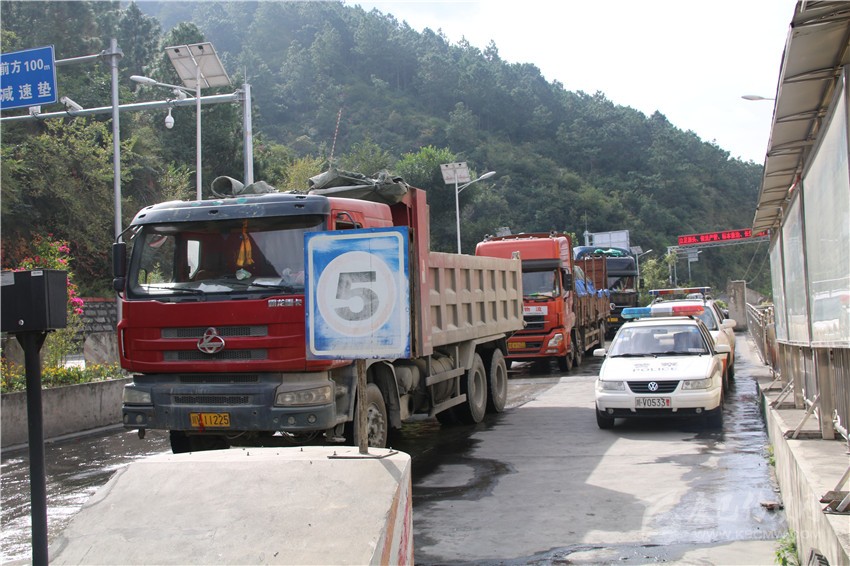 去年10月21日,全國將執(zhí)行新的貨運車裝載標準,將降低貨車運載量。20日,瀘定檢測站迎來了大貨車運輸高峰,當天通過瀘定檢測站的進州貨車就高達953輛,陡然增加的車流量,讓瀘定檢測站執(zhí)法人員忙得不可開交。凌晨1點左右,因距離檢測站數(shù)公里外道路正在施工,造成交通大面積擁堵。盡管不在工作職責范圍內(nèi),瀘定檢測站除值班人員留守外,交通路政、運管、公安交警、特警全員上陣疏導交通。恢復通行時,已經(jīng)是凌晨3點過。對于這樣的“家常便飯”,執(zhí)法人員已經(jīng)司空見慣?!安荒茉跈z測站周邊造成交通擁堵,這是我們的職責”。