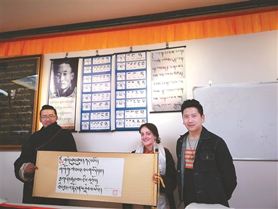 本網(wǎng)訊 前段時(shí)間,一篇微信文章《天空之城新玩法,老外學(xué)寫藏書法》刷爆了甘孜的微信朋友圈,法國(guó)女孩理塘學(xué)藏文書法的消息傳遍大街小巷。如今,這個(gè)叫寶林的女孩已經(jīng)回到法國(guó),她給教授她藏文書法的益西老師打來電話,感謝對(duì)她的教授。