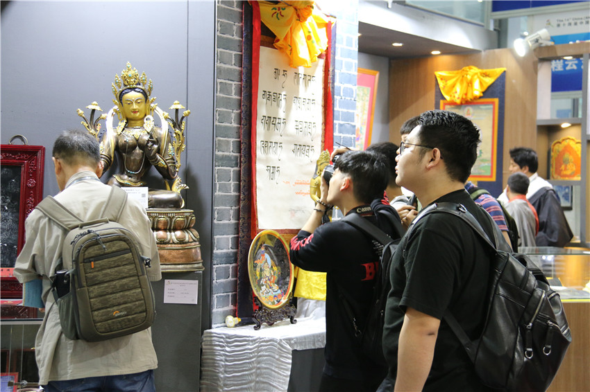 下花色青銅《綠度母佛像》吸引了不少市民駐足關(guān)注。