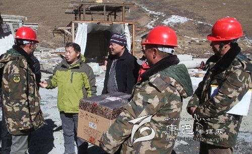 為打好今年交通攻堅(jiān)大決戰(zhàn),我州所有在建公路隧道冬季不停工,部分工程技術(shù)人員和民工將放棄春節(jié)與家人團(tuán)聚。日前,受州委、州政府領(lǐng)導(dǎo)的委托,州政府副秘書長(zhǎng)、州交通協(xié)調(diào)辦主任高見在前往石渠走訪“親戚”途中,專程看望慰問了國(guó)道317線雀兒山隧道和省道217線石馬路海子山隧道的工程技術(shù)人員和民工,并轉(zhuǎn)達(dá)了州委、州政府領(lǐng)導(dǎo)的親切問候。圖為在海子隧道施工現(xiàn)場(chǎng)慰問時(shí)的場(chǎng)景。(本網(wǎng)記者 攝影報(bào)道)