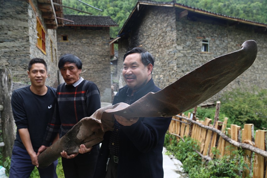“好像謝明楊的兒子謝從富家有個‘風刀’(指螺旋槳葉片),你們?nèi)フ夜?。”思索片刻,楊高清突然記起村子里還有散落的飛機零件。