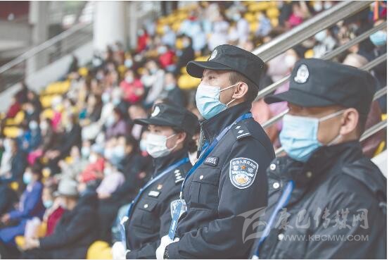 “請(qǐng)出示你的身份證,配戴好口罩?!薄按蟾缒阏义e(cuò)方向了,你是往那邊走?!薄鞍?,你的位置是往左邊走?!薄诒遍T(mén)體育場(chǎng),民警除了安保執(zhí)勤以外,還幫助行動(dòng)不方便的群眾找尋座位,或?yàn)樽稍?xún)的群眾答疑解惑。