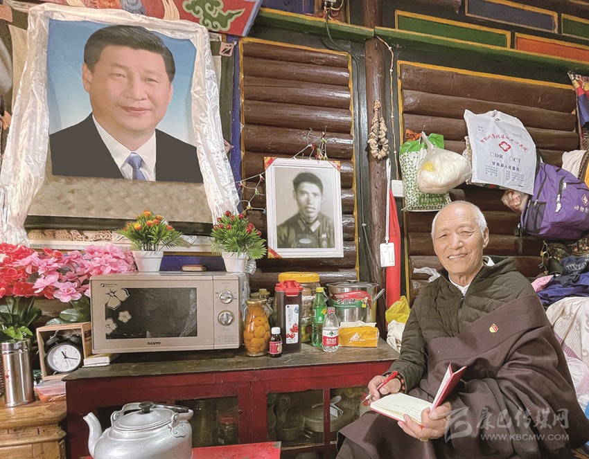 “這本上世紀(jì)60年代印的藏文版毛主席語錄,我不知道翻了多少遍,都快要翻爛了。”華發(fā)蒼顏,中氣十足的多加對(duì)記者笑言:“我從小是‘娃子’,根本認(rèn)不到字,不管是藏漢文;但我現(xiàn)在能流利地讀寫藏文,全是藏民團(tuán)里會(huì)藏文的漢族戰(zhàn)友教的;更有意思的是,我的漢話是藏民團(tuán)里會(huì)說四川話的藏族戰(zhàn)友教的!”