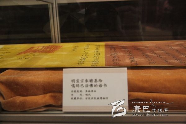 據(jù)介紹,明成祖永樂十一年封誥為國家一級文物,系明永樂帝成祖朱棣于明永樂十一年(1413)敕封噶瑪噶舉楚布寺第二世司徒活佛曲吉降村為“灌頂圓通妙濟國師”時頒賜。那是一份來自600年前的古老信息,也是一份見證中國千百年來民族團結、祖國統(tǒng)一的誥文。誥文清楚的記述了“永樂盛世”中甘孜人民在華夏大家庭中的和諧與共,也把宣德年間明朝文化,經濟繁榮階段中康巴文化的不可或缺緊密的聯(lián)系在一起。