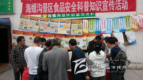 6月12日,州食品藥品監(jiān)管局聯(lián)合海螺溝景區(qū)管理局開展了食品安全科普知識進景區(qū)宣傳活動。現(xiàn)場還展示了真假瀘州二曲酒、小貴賓郎酒,并向前來咨詢的群眾講解鑒別方法,受到了廣大群眾的歡迎?;顒赢?dāng)天共向過往群眾發(fā)放各種宣傳資料500余份,接受群眾咨詢100余人次,懸掛橫幅、標(biāo)語20余幅。圖為活動現(xiàn)場。(余先勇 攝影報道)