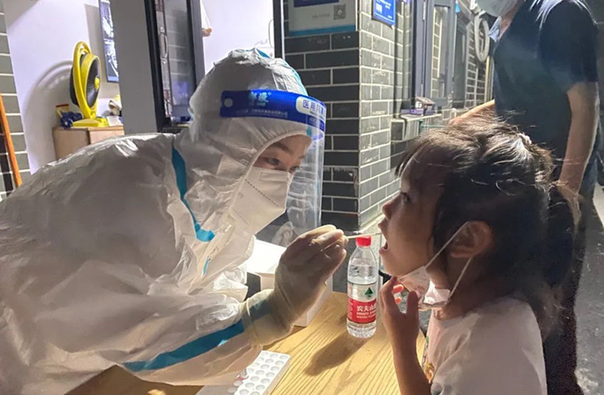 圖為醫(yī)務(wù)人員正在開展核酸檢測(cè)采樣。