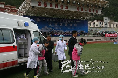 演練現(xiàn)場,工作人員在北門廣場搭起了學校醫(yī)務室、學校食堂、縣醫(yī)院、留樣柜、農(nóng)貿(mào)市場、應急指揮部等情景模擬臺,3名身穿校服的孩子坐在“校醫(yī)務室”,有的捂著肚子,有的托著腦袋,表情“痛苦”,正焦急地等待“救援”。演練過程中,學校緊急啟動學校食品安全事故應急預案,第一時間將發(fā)病學生送往醫(yī)院,并通知學生家長。同時向縣教育局、縣食品藥品監(jiān)督管理局報告。相關職能部門獲知該信息后,迅速趕赴現(xiàn)場,成立應急指揮中心。在指揮部的統(tǒng)一協(xié)調(diào)指揮下,康定縣食品安全委員會成員單位領導及食品安全辦成員按照職責分工,分別組織開展應急救援和事故調(diào)查處置等工作。事故調(diào)查處置貫穿醫(yī)療救治、生產(chǎn)加工、市場流通、餐飲等重要食品監(jiān)管環(huán)節(jié)。由于指揮得當,措施得力,處置及時,有效控制了“中毒事件”的蔓延和擴大。應急演練達到了預期效果。