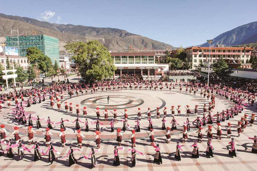 甘孜州有藏、漢、彝、羌、納西、回等20多個民族,其中藏族人口占81.5%。從古至今,甘孜大地各族群眾交往交流交融,各族群眾“同唱一首歌、同跳一支舞、同吃一桌飯”成為習(xí)以為常的生活場景,人心凝聚、團(tuán)結(jié)奮進(jìn)的精神紐帶更加牢固。