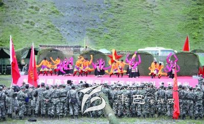 慰問(wèn)演出在獨(dú)立營(yíng)戰(zhàn)士的拉歌聲中徐徐拉開(kāi)帷幕,隨后,《北京的金山上》、《我的士兵兄弟》等一首首耳熟能詳?shù)母枨鹨簧涎??!稓g歌踏舞》、《盛世歡歌》等舞蹈,時(shí)而歡快跳躍,時(shí)而雄壯豪邁,歌曲《說(shuō)句心里話(huà)》唱出了官兵的思念之情,也唱出了官兵們保家衛(wèi)國(guó)的心聲。整場(chǎng)演出在舞蹈《康巴人》中落下帷幕。