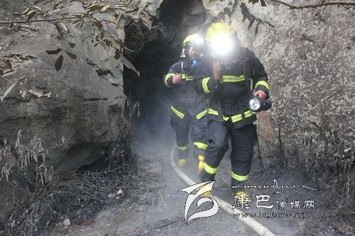 消防官兵在使用有毒氣體探測儀對現(xiàn)場氣體進(jìn)行檢測后發(fā)現(xiàn),雖然煙氣刺鼻,但未檢測出有毒氣體。在使用排煙機(jī)對山洞進(jìn)行持續(xù)排煙后,中隊(duì)派出兩名消防官兵佩戴空氣呼吸器和強(qiáng)光燈在水槍的掩護(hù)下進(jìn)入山洞偵查煙氣源。因山洞內(nèi)煙霧大,溫度高,能見度低,第一批消防官兵未能找到煙氣源。在短暫準(zhǔn)備后,第二批消防官兵攜帶相關(guān)器材進(jìn)入山洞繼續(xù)尋找。在距離山洞口十幾米的地方,消防官兵發(fā)現(xiàn)了大量正在燃燒的電纜線,經(jīng)初步確定,大量白煙就是電纜線燃燒后產(chǎn)生的。因山洞長時(shí)間受高溫烘烤隨時(shí)可能倒塌,消防官兵在與當(dāng)?shù)卣?fù)責(zé)人協(xié)商后對山洞洞口實(shí)施了封閉滅火。