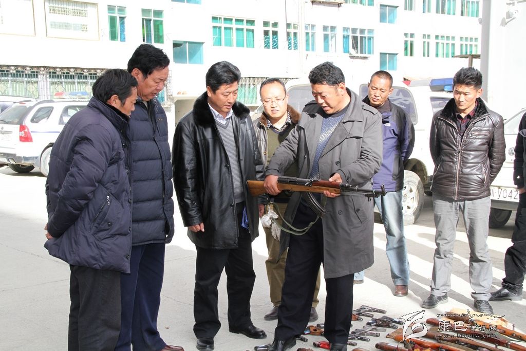 該縣公安局堅(jiān)持打防結(jié)合、標(biāo)本兼治,嚴(yán)厲打擊、嚴(yán)密防范涉槍違法犯罪,將曲登鄉(xiāng)、禾尼鄉(xiāng)、格木鄉(xiāng)、呷柯鄉(xiāng)列為重點(diǎn)整治地區(qū),予以掛牌督辦整治,并制定了專項(xiàng)搜捕方案,明確打擊整治的范圍和重點(diǎn),有針對(duì)性地開展了統(tǒng)一清繳整治行動(dòng),全力布控,直搗窩點(diǎn)。11月12日,通過縝密偵查,破獲一起非法持有槍支案,抓獲犯罪嫌疑人四某,收繳“五六式”半自動(dòng)步槍1支,子彈22發(fā)。11月19日凌晨4時(shí)許,縣局出動(dòng)警力120人,車輛24臺(tái),下設(shè)3個(gè)行動(dòng)組,對(duì)禾尼鄉(xiāng)禾然尼巴村、禾然色巴村,格木鄉(xiāng)甲西村開展了“點(diǎn)對(duì)點(diǎn)”搜捕行動(dòng),抓獲犯罪嫌疑人魯某等4人,搜繳各類槍支9支,子彈139發(fā),管制刀具17把,有效地震懾了違法犯罪。