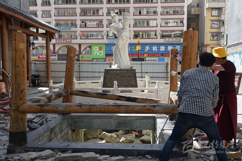 75日,夏日艷陽照耀下的康定城中,散步的人們簇?fù)碓谒铀囆g(shù)景觀改造提升施工現(xiàn)場議論紛紛。