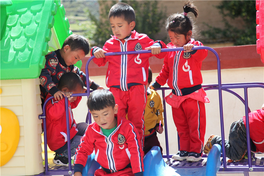 理塘縣濯桑鄉(xiāng)下汝村五歲的格絨澤西,去年9月就讀于下汝村幼兒園,現(xiàn)在簡單的漢字、拼音、藏文字母能認得到,從1可以數(shù)到20,唱兒歌跳藏舞特別開心,這讓父親曲云十分高興,不然像以前只好在家中玩耍或帶到放牧的草場、勞作的地里。每次父親帶她上縣城,格絨澤西都十分羨慕城里的孩子能背上小書包上幼兒園?!罢鏇]想到,我家的小孩在村里就能讀幼兒園,還學(xué)到了知識?!鼻聘吲d地說。