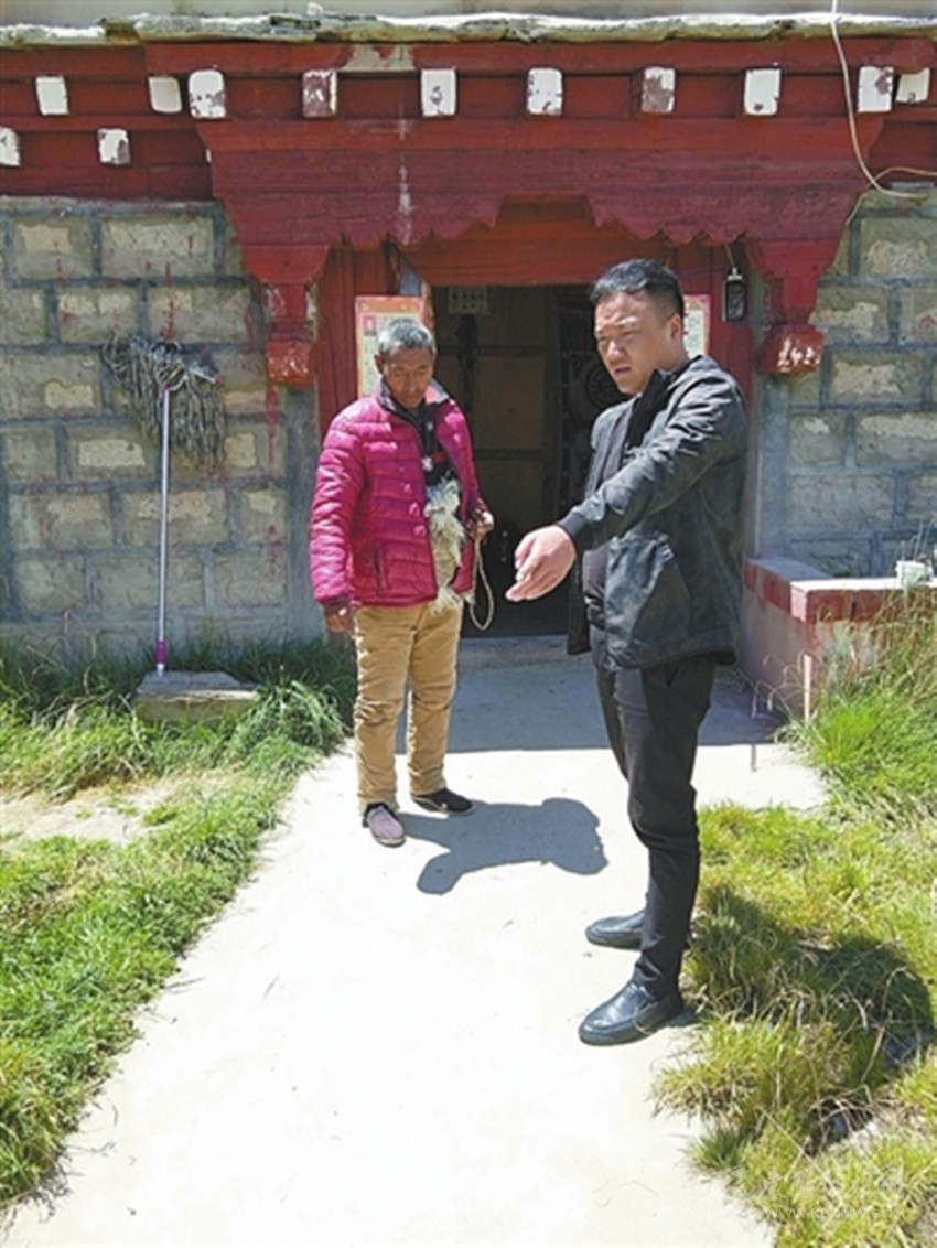 2018年9月,因為持續(xù)降雨造成貧困戶扎西曲扎的房屋滲水開裂,成為危房。雷汪告訴扎西曲扎一定要注意家人安全,到處咨詢建房政策,最終通過縣住建局申報了援藏資金5萬元,為他家重建了新房。