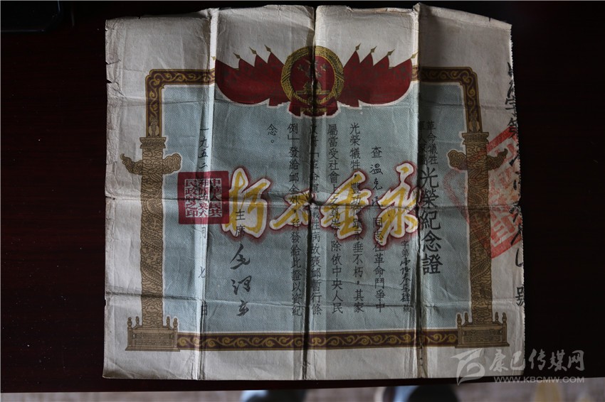 溫克民的烈士證。