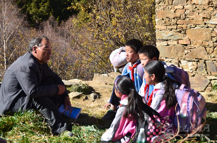 雖然代課教師的工資從當(dāng)年的每月200元漲到了現(xiàn)在每月800元,然而在以市場經(jīng)濟(jì)為主體的社會(huì)里,800元工資的人群屬于低收入群體。盡管如此,阿布里老師依然早出晚歸,在那條他閉上眼都能走的小徑上來回奔波,依舊嘔心瀝血教書育人,那郎朗的讀書聲在藏寨的上空久久回蕩。每天上學(xué)放學(xué)路上,孩童們在阿布里老師的帶領(lǐng)下,在小徑上排著整齊的隊(duì)伍,撒下一路歌聲一路歡笑。