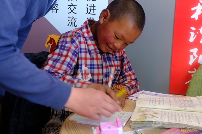 兩年前,小波家享受異地扶貧搬遷政策,隨父母從塔子鄉(xiāng)搬進(jìn)了安康社區(qū)的新家,小波就近在色達(dá)二完小讀書,現(xiàn)在已經(jīng)是二年級(jí)的學(xué)生了。由于學(xué)習(xí)基礎(chǔ)薄弱,他每個(gè)周末都會(huì)到社區(qū)里的“小課堂”補(bǔ)習(xí)。