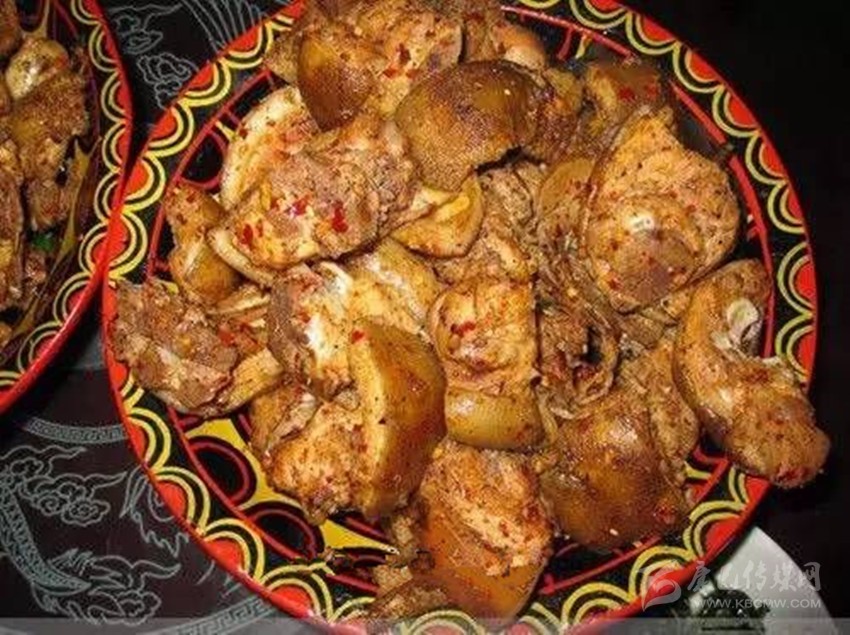 彝族招牌菜坨坨肉,坨坨肉是彝族人逢年過(guò)節(jié)及招待貴客的招牌菜,其肉為30市斤以下以非現(xiàn)代飼料喂養(yǎng)而成的小豬為原料,輔以彝族特有的香料、佐料稍加加工而成。其肉塊碩大,一般呈正方形,故稱“坨坨肉”,入口化渣,肥而不膩,口感細(xì)嫩。