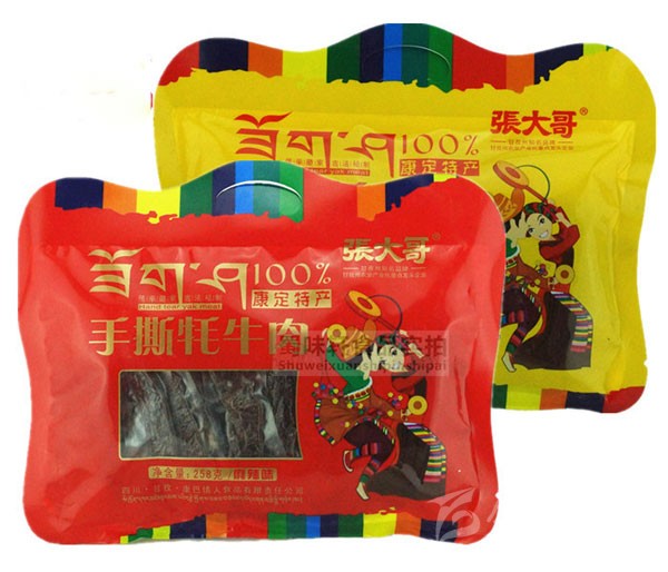李家溜溜的大姐,人才溜溜的好喲。張家溜溜的大哥,看上留溜的她喲。月亮彎彎,看上溜溜的她喲……一首《康定情歌》,不僅唱紅了溜溜情歌城康定,也唱紅了張大哥牛肉干。作為康定本土特產(chǎn),牛肉干肉質(zhì)鮮美,價(jià)格實(shí)惠。值得購(gòu)買(mǎi)。