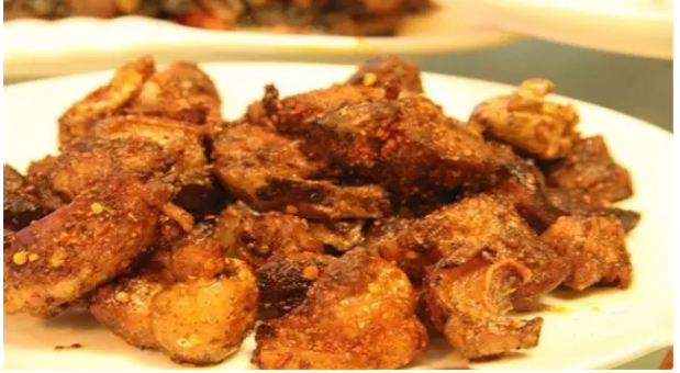 據(jù)《藏人言藏》記載,在康區(qū)和游牧區(qū),通常人們吃得最多的是牦牛肉。宰殺牦牛一般在秋季,殺牦牛時,首先取出肝臟、胃、腸子,再把骨頭架切成五大塊,即兩塊肩部、兩塊臀部和一塊胸部。肝臟需掛起來凍著,第二天早上再切開生吃。如果幾頭牛一起殺,就會把腸子放進(jìn)一個胃里,掛在帳篷外過夜冷凍,第二天清早人們的第一件事就是把這些腸子取下來,埋在牛糞堆里,一直埋到再次取出來為止。