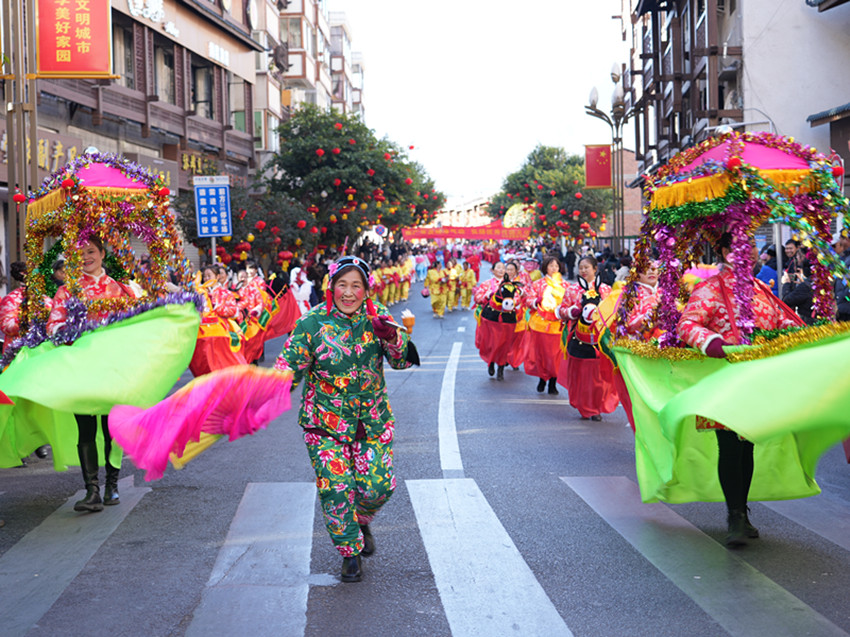 隨著悠揚的弦胡聲響起,備受期待的“千人弦子鍋莊”震撼上演。來自夏邛鎮(zhèn)、地巫鎮(zhèn)、竹巴龍鄉(xiāng)等多個鄉(xiāng)鎮(zhèn)的群眾演員們輪番上場,他們身著巴塘傳統(tǒng)民族服飾,踩著節(jié)拍不斷律動,含胸、顫膝、點踢、三步一撩,一步一靠,婀娜輕盈如行云流水;半圓、橢圓、長圓與肢體撩動飛舞,一個個深情的圓意蘊廣遠,體現(xiàn)著天人合一的動態(tài)美。不少游客群眾被吸引加入其中,一圈圈、一層層,大家縱情歌舞、歡騰跳躍,沉浸在非遺盛況中。在觀看演出后,來自河南的游客劉女士內(nèi)心十分雀躍:“我今天專門過來看表演,現(xiàn)場非常熱鬧,每一個節(jié)目都非常精彩,極具民族特色和觀賞性,讓我大飽眼福。民族的就是世界的,我們國家有這么多優(yōu)秀燦爛的民族文化,這是我們的驕傲,要更好地傳承和發(fā)揚好。今天的活動非常有意義,所有參演人員十分投入、熱情滿滿,從載歌載舞中看到了巴塘群眾對幸福生活的表達,感受到了巴塘濃濃的年味?!币磺右磺F(xiàn)場歌舞如潮,歡呼聲叫好聲此起彼伏,匯成一片歡樂的海洋。此次弦子鍋莊展演在保持傳統(tǒng)弦子鍋莊舞曲風(fēng)格的基礎(chǔ)上,還創(chuàng)造性地融入了民族團結(jié)、群眾生活等內(nèi)容,用鄉(xiāng)音唱出群眾心中的喜悅,用舞蹈跳出對美好生活的向往。在傳承保護民族文化的同時,又賦予弦子鍋莊舞新時代文化內(nèi)涵,充分展現(xiàn)巴塘中國民間弦子之鄉(xiāng)深厚的歷史文化和多彩多姿的民俗風(fēng)情。