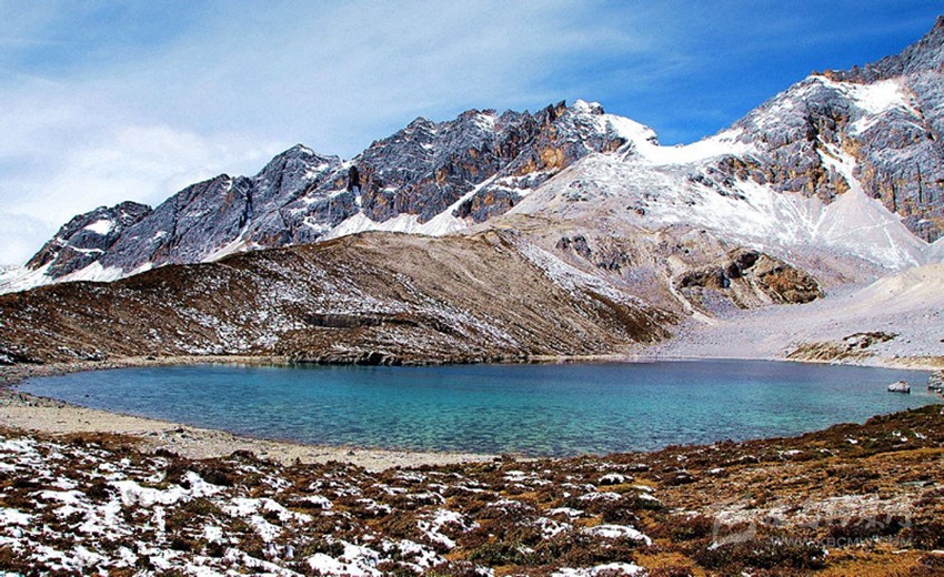 五色海又名登崇措,舍利海一意為吉祥海,五色海由于光的折射下,產(chǎn)生五種不同顏色而得名:其真名為“單增措”,它位于仙乃日與央邁勇之間,海拔4700米,湖面呈圓形。冰谷下伸至湖畔,雪山倒影湖面,呈現(xiàn)奇幻的色彩。是藏區(qū)著名的圣湖(佛經(jīng)中贊譽(yù)該湖與西藏羊卓雍措齊名),據(jù)傳能“返演歷史,預(yù)測(cè)未來(lái)”,還有很多宗教上的傳說(shuō)。